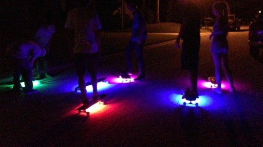 Kolorowe diody LED nie tylko wyróżnią osobę poruszającą się na deskorolce z tłumu, ale także zapewnią bezpieczeństwo podczas jazdy o zmierzchu. Sam przekonaj się jak wygląda jazda na deskorolce z kołami led klikając na poniższe zdjęcie