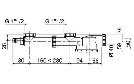 Syfon, półsyfon do zlewozmywaka podwójny niski z wyjściem do zmywarki lub pralki firmy WIRQUIN ESPACE.