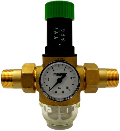REDUKTOR CIŚNIENIA HERZ 1/2" z FILTREM + MANOMETR + PÓŁŚRUBUNKI DN15