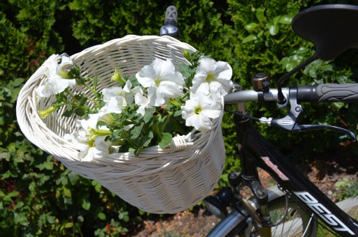 Kosz na rower w kolorze białym z odrutowaniem oraz hakami do przymocowania na kierownicy roweru. Kosz posiada składaną rączkę przez którą również przechodzi drut dzięki czemu całość jest bardzo wytrzymała. Solidny kosz, wypleciony z wikliny o średniej grubości I gatunku. Doskonale wyprofilowany oraz bardzo wytrzymały- splot klasyczny z ozdobnym zakończeniem w formie warkocza.