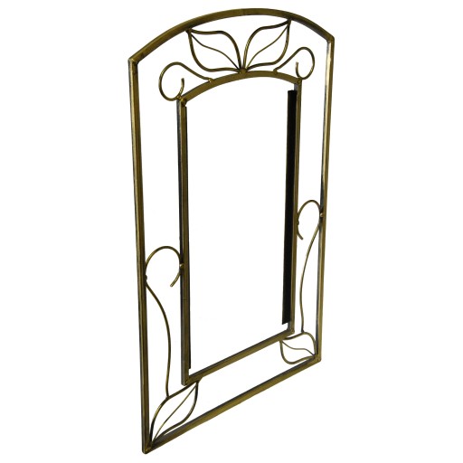 Rama do lustra wykonana z metalu doskonale nadaje się do przedpokoju, łazienki czy też sypialni. W oknie na lustro posiada dwa metalowe pasy blachy do mocowania lusterka. Malowana proszkowo i ręcznie patynowana na stare złoto upiększy każde wnętrze.