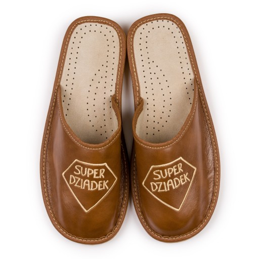Wsuwane kapcie ze skórzaną wkładką, SUPER DZIADEK