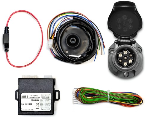 Moduł do podłączenia instalacji elektrycznej haka. Przeznaczenie uniwersalne. Umożliwia podłączenie przyczepy z wtykiem 7 PIN. Przeznaczony do pojazdów bez wymaganej homoogacji. Dostosowany jest do pojazdów z instalacjami 12V.