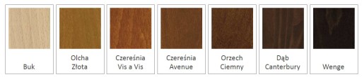 Prezentowany taboret wykonujemy w dowolnym kolorze drewna z poniższej palety.
