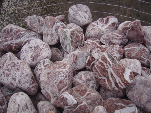 Otoczak czerwony to kamień naturalny w kolorze czerwonym posiadającym białe przebarwienia, który nada ogrodowi elegancji.