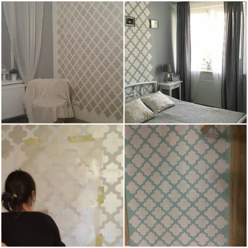 Projekt szablonu został przygotowany w taki sposób, aby wzór można powtórzyć na całej powierzchni ściany. Pozwala to osiągnąć efekt tapety, bez wydawania dużych sum na kilka jej rolek.