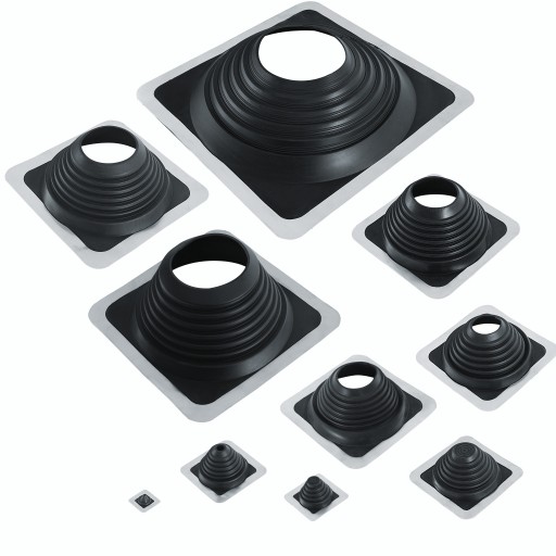 Kołnierze uszczelniające produkowane są z nowoczesnego materiału EPDM, który charakteryzuje się podwyższoną odpornością na działanie wysokich temperatur. Posiada także wysoką wytrzymałość na rozciąganie oraz promieniowanie UV.