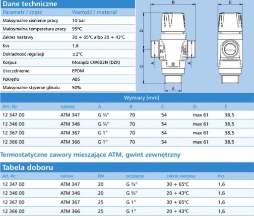 - Zawór afriso atm 366 20c - 43c kvs 1,6