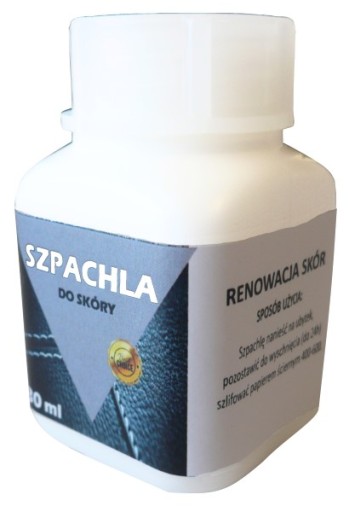 Oczyścić i odtłuścić skórę zmywaczem do skóry lub acetonem, nanieść Szpachlę na ubytek, pozostawić do wyschnięcia, szlifować papierem ściernym 400-600. Środek ten jest produkowany w kolorze popielatym, po wyschnięciu można go pomalować na dowolnie wybrany kolor farbą do skór.