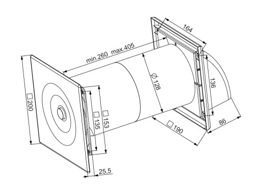 7 - teleskopowy kanał wentylacyjny umożliwiający łatwe dostosowanie do grubości ściany pomieszczenia