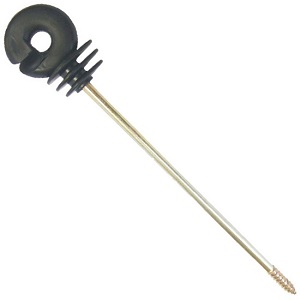 Izolator okrągły z trzpieniem o długości 21 cm. Trzpień metalowy z wkrętem do drewna, może być również montowany w słupkach betonowych za pomocą kołków rozporowych. Izolator posiada wzmocnione kołnierzyki zapobiegające przebiciom oraz zaokrąglone brzegi zabezpieczające przewód przed przetarciem. Ich główna zaleta to możliwość odsunięcia linii ogrodzenia od istniejącego już płotu.