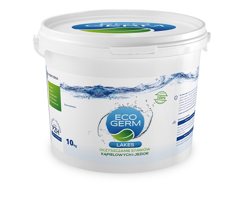 Produkt ten zawiera wyselekcjonowane szczepy bakterii o zróżnicowanym sposobie działania. Skutecznie redukuje ilość związków biogennych w wodzie (głównie związki azotu i fosforu), szybko ogranicza rozwój glonów oraz sinic, powodując wzrost przejrzystości wody. Preparat likwiduje nieprzyjemne zapachy i znacznie zmniejsza ilość osadów dennych oraz zamulenie w stawie kąpielowym lub jeziorze. EcoGerm Lakes pozytywnie wpływa na zdrowie ryb i zwiększa populację dafni oraz innych organizmów wodnych, będących wskaźnikiem czystości wód.