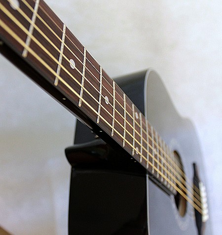 Podstrunnica z drewna palisandrowego jest bardzo wytrzymała na ścieranie pod palcami, dzięki czemu gitara może służyć przez wiele lat.