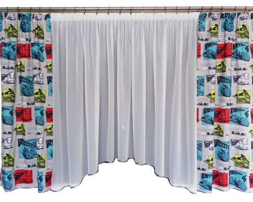 KOMPLET : FIRANA WOALOWA w kolorze białym + 2szt ZASŁONKI CARS DA57