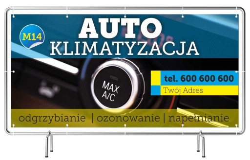 Przedmiotem aukcji jest baner reklamowy o wymiarach 3m x 1m (jesteśmy w stanie wykonać dowolny rozmiar) na materiale plandekowym wysokiej jakości.