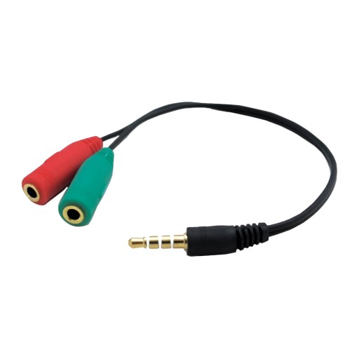 Przewód umożliwiający podłączenie pod jedno gniazdo jack 3,5mm słuchawki i mikrofon jednocześnie. Rozmowy przez internet za pomocą komunikatorów jak popularny Skype odbywa się najczęściej przy użyciu mikrofonu i słuchawek. Niestety nie wszystkie urządzenia posiadają osobne wejścia na mikrofon i słuchawki. Nasza przejściówka pozwala na podłączenie słuchawek i mikrofonu do jednego gniazda jack 3,5mm.