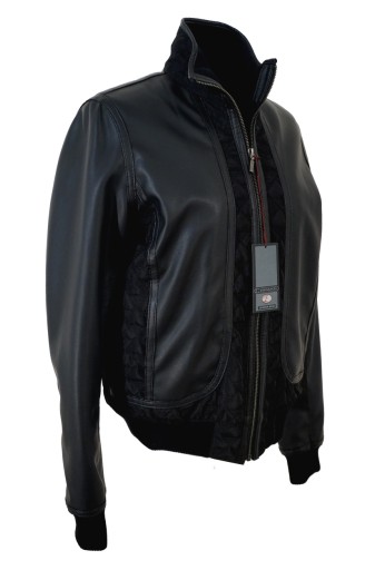 Męska kurtka wykonana z eco skóry z dodatkiem pikowanej tkaniny. Model sportowy pikowany ze stójką, lekko ocieplony. Zapinana na zamek błyskawiczny pod szyję. Kieszenie zewnętrzne dwie pionowe, i jedna wewnętrzna na dokumenty. Kurtka dołem i rękaw zakończone ściągaczem z dzianiny. Model o nowym ponadczasowym kroju, wygodny przeznaczony dla osób ceniących sportowy styl.
