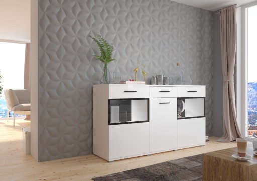 Nowoczesna komoda nadająca się do każdego wnętrza. Nadaje się do salonu. Komoda zachwyci swoim wyglądem oraz funkcjonalnością. Mebel wykonany jest z grubej płyty laminowanej z wzmocnionymi obrzeżami ABS, listwy natomiast wykonane są z płyty MDF. Komoda jest bardzo odporna na wilgoć, zabrudzenia oraz zarysowania.