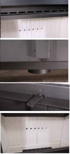 Uwaga: Ze względu na wysoką temperaturę w obudowie wkładu kratki w okapie jak i wieńczące układ rozprowadzania powietrza w domu muszą być metalowe. W okapie kominka montujemy wyłącznie kratki bez żaluzji.