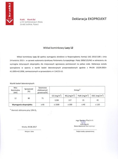 Urządzenie spełnia wymagania Ekoprojektu oraz normy BImSchV 2, wyznaczającej maksymalną emisję CO.