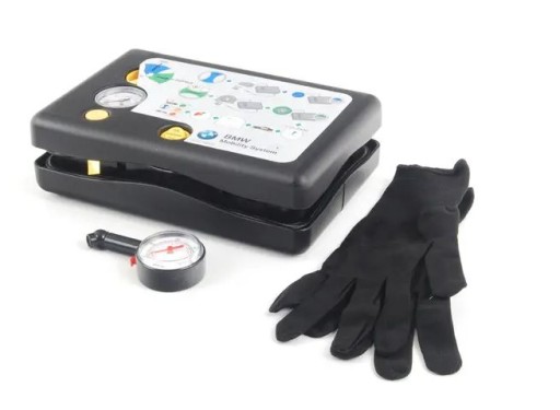 wraz z kompresorem, rękawicami oraz manometrem w etui
