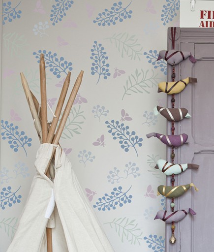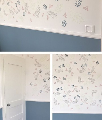 Projekt szablonu został przygotowany w taki sposób, aby wzór można powtórzyć na całej powierzchni ściany. Pozwala to osiągnąć efekt tapety, bez wydawania dużych sum na kilka jej rolek.