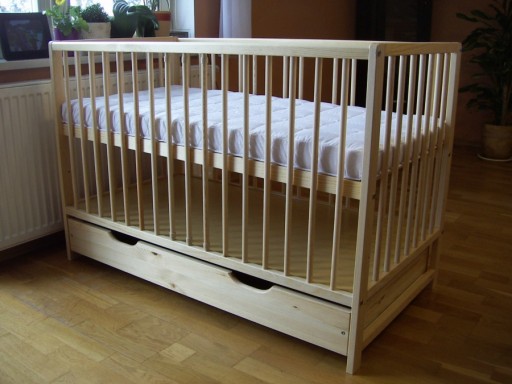 Standardowe łóżeczko o wymiarach 120 x 60cm.