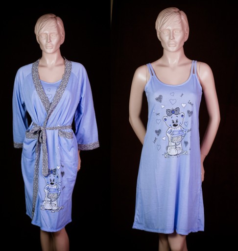 ✅komplet może służyć jako uzupełnienie naszej bielizny nocnej.Koszula wykonana z miłej tkaniny 100% bawełna.