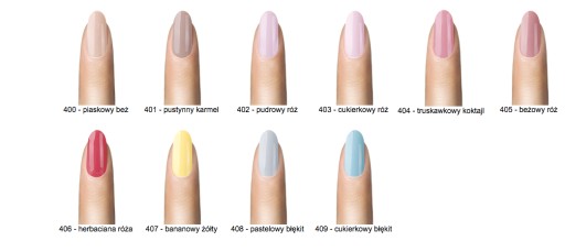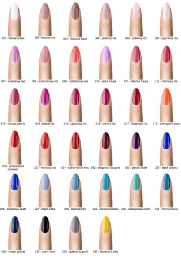 - Lakiery: 5 kolorów np: 002, 201, 407... itd