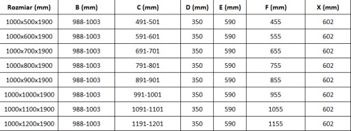- Szerokość: 100 cm (drzwi), 80 cm (ścianka)