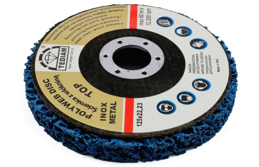 Ściernica marki TEDIAM wykonana jest z grubej i gęstej włókniny wysokiej jakości. Uniwersalna tarcza przeznaczona jest do mechanicznego usuwania, polerowania, wygładzania i ścierania m.in. metalu, stali kwasoodporna inox, drewna, tworzyw sztucznych i innych.
