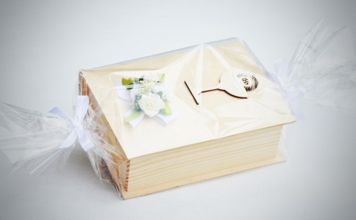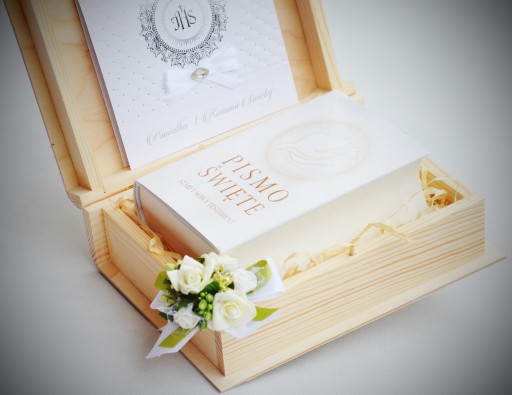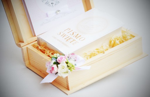 - elegancką, drewnianą szkatułkę w kształcie książki z indywidualną, ręcznie wykonaną dekoracją; wymiar szkatułki 24x19x10cm