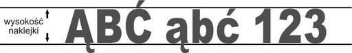 Pamiętaj, że wysokość oznacza rozmiar DUŻYCH LITER oraz CYFR. Kupując naklejkę o wysokości np. 10 cm o treści Sprzedam wysokość tą będzie miała litera S oraz d, natomiast pozostałe literki mają wymiar z proporcji czcionki.