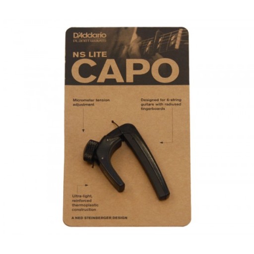 Profesjonalny kapodaster D'Addario (Planet Waves) z serii NS. Model PW-CP-16 oznaczony został jako model NS Lite z prostej przyczyny: wykonany został nie z aluminium, jak większość kapodastrów z serii NS, lecz z ultra lekkiego i bardzo wytrzymałego tworzywa ABS, formowanego termicznie.