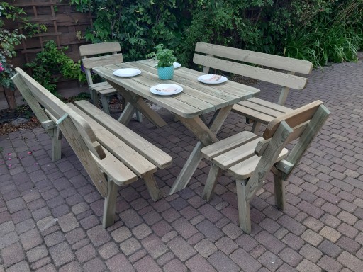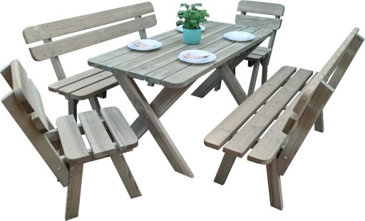 Nowe - nie wymagają dodatkowego malowania w celu zabezpieczenia drewna. W zależności od stopnia ekspozycji drewna na szkodliwe warunki zewnętrzne, zaleca się ponowną impregnację mebli po upływie 1-2 lat dowolnym środkiem do impregnacji drewna na zewnątrz. W celu nadania im innego koloru już teraz, można je we własnym zakresie dodatkowo pomalować. Każdy ciemniejszy kolor, pokryje jasno-zielony odcień po impregnacji.