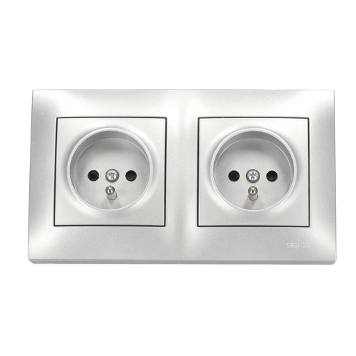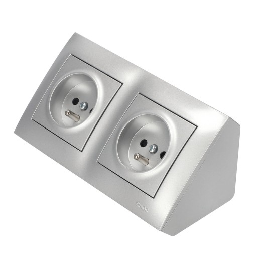 Gniazdo narożne podwójne 2x230V z uziemieniem Simon 54 SREBRNE