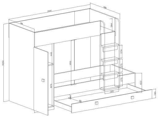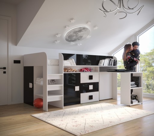 - dolne spanie jest wysuwane na kółkach - może również pełnić opcję szuflady