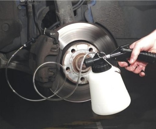 - Przyrząd do wymiany płynu hamulcowego o pojemności 0,75l wraz z magnesem, który unieruchamia pojemnik do napełniania płynem