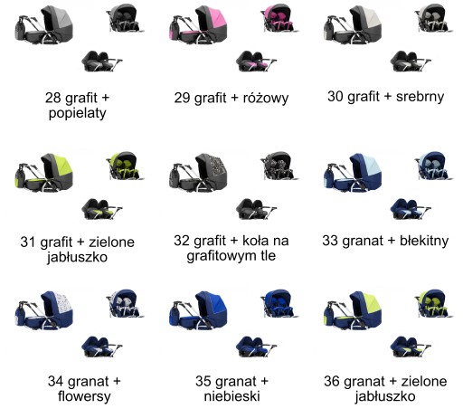 - adapter do zamontowania fotelików na stelażu wózka,