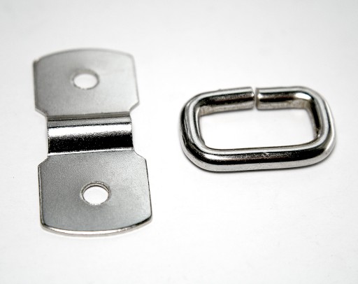 Sprzedawany zestaw składa się z metalowej blaszki z otworkami na wkręty oraz oczka - uchwytu.
