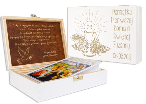 GRAWEROWANE BIAŁE PUDEŁKO NA CHRZEST LUB KOMUNIĘ