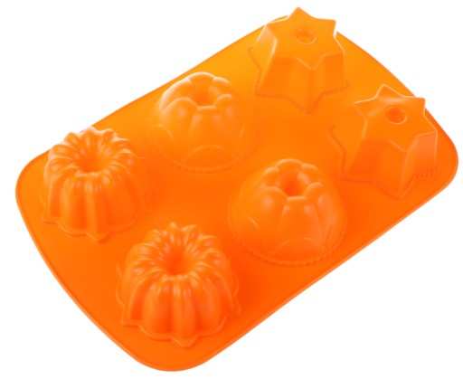 - Forma posiada 6 miejsc na wypieki w 3 różnych kształtach
