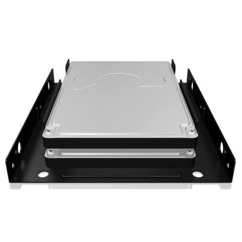 Wewnętrzna ramka montażowa, pasuje do standardowej wnęki na napęd 3,5 ''. Umożliwia instalację 2x 2,5-calowych dysków twardych lub SSD. Odpowiedni również dla bardzo małych komputerów Media Center. W pełni metalowa rama dla lepszego odprowadzania ciepła z dysków twardych.