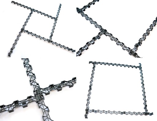 Łącząc poszczególne listwy możemy utworzyć stabilną kratownicę o dowolnych kształtach.