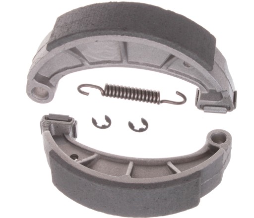 OPIS: SZCZĘKA SZCZĘKI HAMULCOWE HAMULCA 2 SZTUKI NA JEDNO KOŁO WERSJA ZE SPRĘŻYNĄ + ZABEZPIECZENIA SEGERA + METALOWE OKUCIA