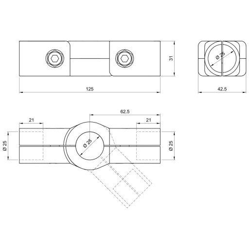 Produkt zawiera: Złączka "S" kątowa trzykierunkowa do rury Fi 25