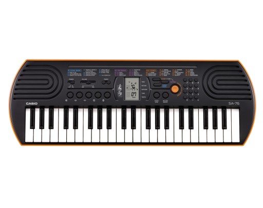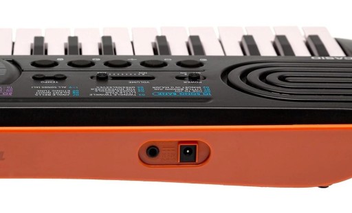 Ten wyjątkowy, 44 klawiszowy, mały instrument to doskonała zabawka dla małych dzieci na początek drogi muzycznej, która poprzez zabawę uczy podstaw kształcenia słuchu oraz dzięki wielu ciekawym funkcjom, wprowadza najmłodszych w pasjonujący świat muzyki. Pomimo małych rozmiarów i niskiej ceny, instrument posiada bogaty zbiór 100 brzmień, 50 rytmów oraz 10 wbudowanych utworów do nauki gry. Wysoka jakość brzmienia zapewnia modułem brzmieniowy LSI z ośmiogłosową polifonią. Nawet przy zasilaniu bateryjnym instrument pozwala na wiele godzin przyjemnej zabawy z muzyką. Keyboard automatycznie się wyłącza kiedy nie jest używany w celu oszczędzania baterii. Wbudowany wyświetlacz pokazuje najważniejsze informacje, a przycisk szybkiej zmiany brzmienia na pianino bądź organy, w łatwy sposób daje dostęp do podstawowych ustawień. Całość dopełnia miła i przyjemna dla najmłodszych kolorystyka instrumentu.