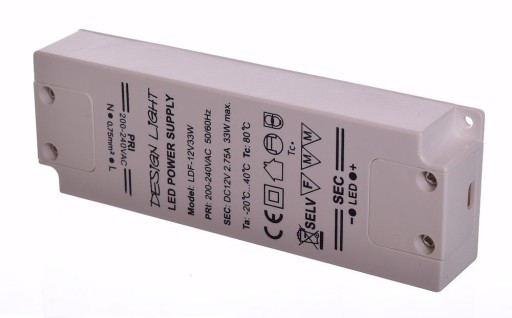 - Jego przeznaczenie to zasilanie oświetlenia LED o napięciu 12V DC i łącznej mocy nie przekraczającej 33W.