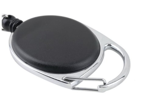 Przedmiotem aukcji jest: retraktor (zwijana smycz / linka nylonowa), w formie breloka z mini karabińczykiem (1 sztuka).