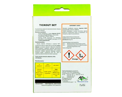 Sekret ekstremalnie skutecznego działania zestawu TickOut Set tkwi w silnym środku owadobójczym w postaci koncentratu stężonej emulsji do rozcieńczania wodą do opryskiwania lub mieszaniny z olejem do aerozolowania.